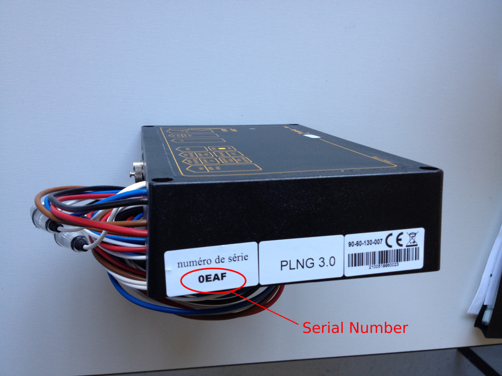 The serial number is composed of 4 hexadecimal characters (from 0 (zero) to F). You can find it on a label stuck on the ECU (see image below) or via the menu of your pilot order.